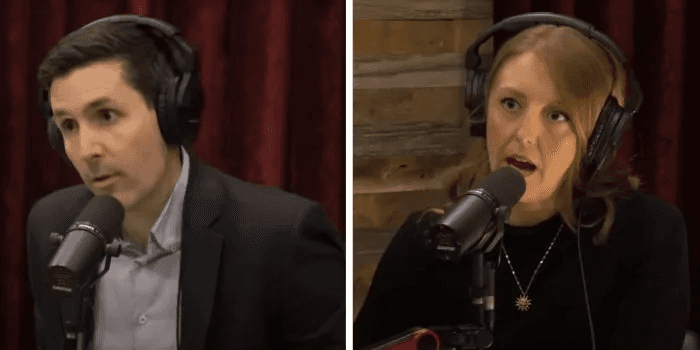 Brother-sister duo Calley and Dr. Casey Means on the Joe Rogan Podcast in 2024